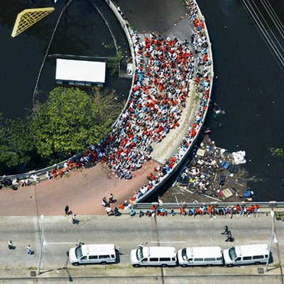 O.P.P. Inmates guarded on New Orleans overpass following Hurricane Katrina