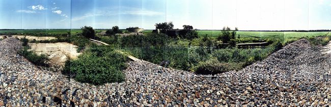 Tule Lake Relocation Camp, Sewer, Tulelake, California © Masumi Hayashi. Panoramic photo collage with Fuji Crystal Archive prints, 1996. Size: 32″ x 59″