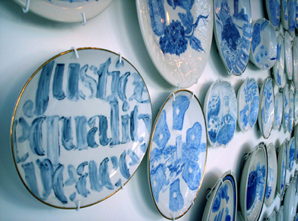 The Last Supper exhibited with Odell Barnes Jr.’s ‘Justice Equality Peace’ plate in the foreground. Photo credit: Aswin Subanthore
