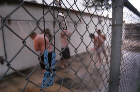 Wards offer each other comfort and support before entering the Sweat Lodge. No blood has ever been spilt in the Sweat Lodge area, and gang rivalries and personal disputes are often resolved during this time.
