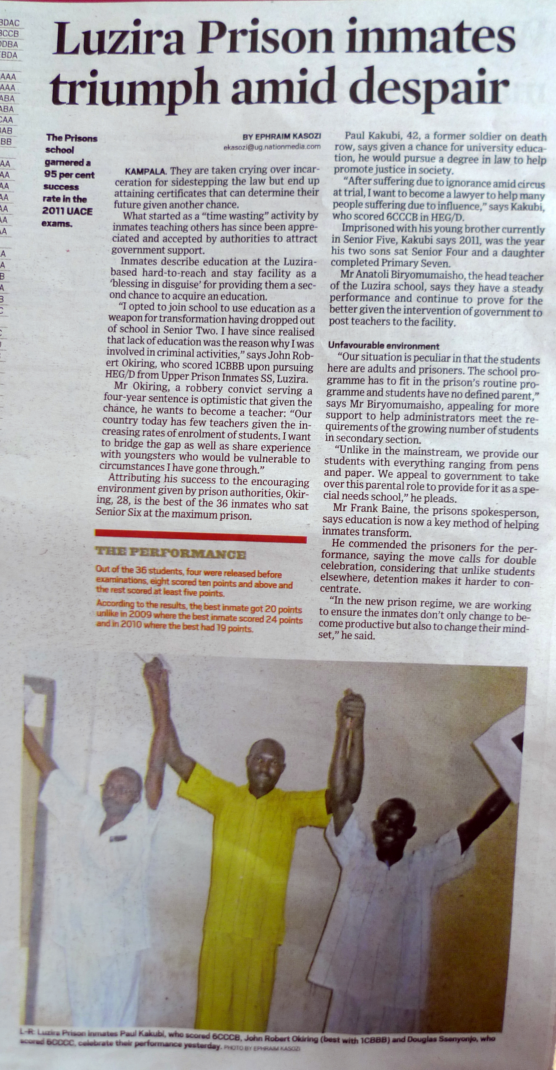 – – Mr Anatoli Biryomumaisho, head teacher of the Luzira Prison School, quoted in the Daily Monitor, Uganda, March 1st 2012.