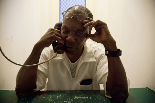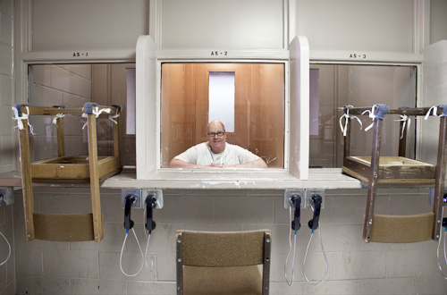 Imprisoned subjects can be guarded at first. Usually, there’s 10 to 15 minute window where you’re talking on the phone through the plexi glass. I’ve got my camera just sitting there and I’m not taking photos, just taking the pulse of the person and getting to understand them … and that will dictate everything.