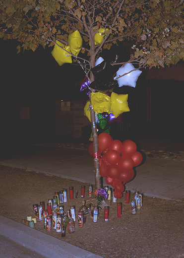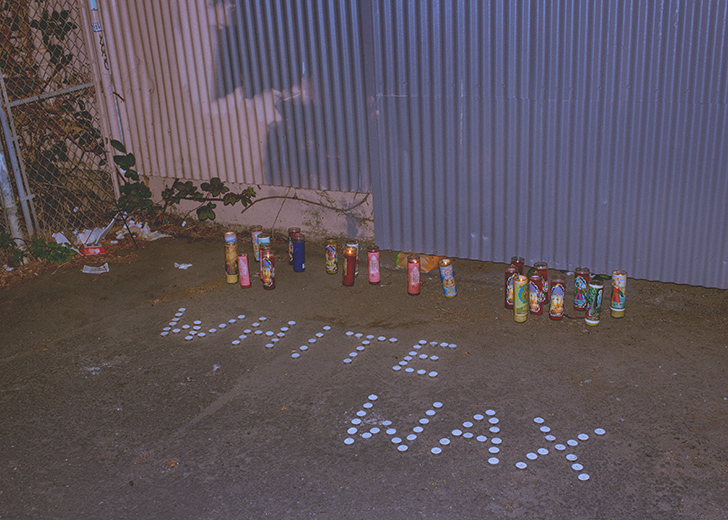 White Wax is a year-long visual document of memorials to homicide victims on the streets of Oakland. Tauszik says in his artist statement that his photos are to serve as a medium for self-examination. He thinks America is in the middle of a collective re-examination of its criminal justice policy, gun culture and post-racial credo.