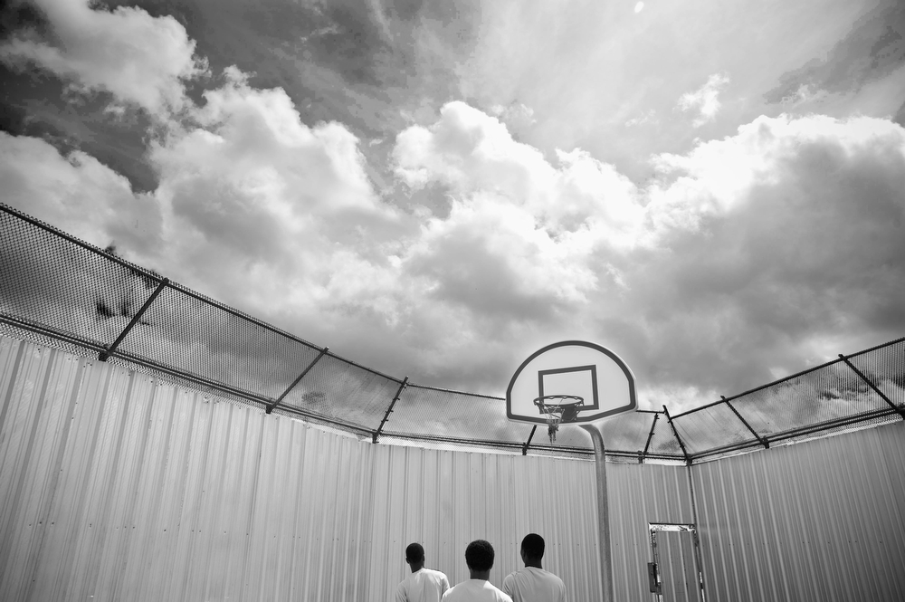 Teenage boys play basketball at the Youth Study Center juvenile detention facility in New Orleans, Louisiana.