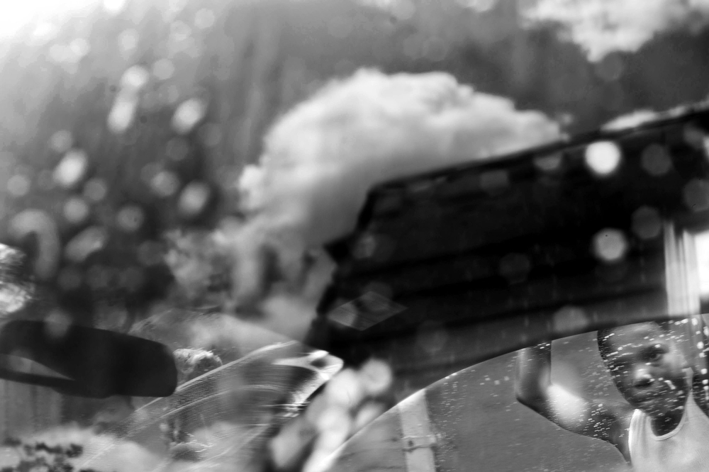 A boy stares though a window during a Friends and Family of Incarcerated People (FFOIP) car wash fundraiser in Southeast Washington, D.C. Friends and Family of Incarcerated People, a non-profit based in Washington D.C., offers a summer camp for children of incarcerated parents and other children whose parents are absent.