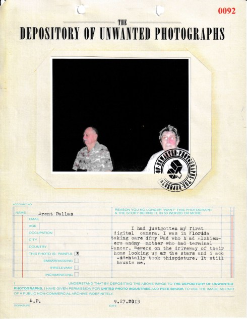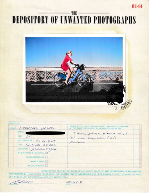 In the summer of 2013, I attempted to temporarily get out of my prison-photo-bubble and find out what people loved about photographs by asking them which of theirs they loved the least. Which did they wish to condemn to the trash-bin of history?