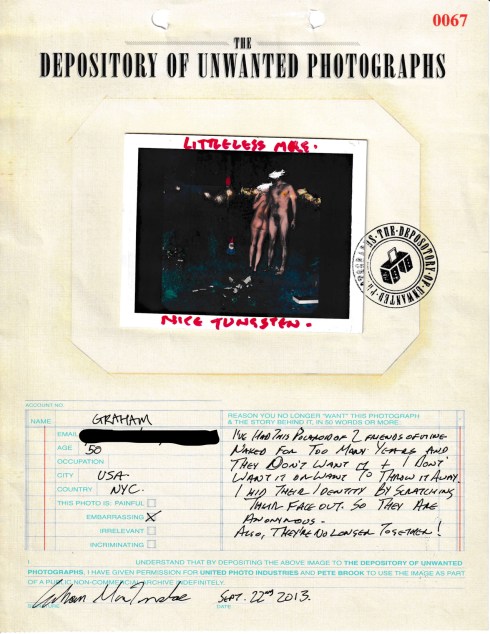 For two long weekends at Photoville, a couple of volunteers and I took submissions of embarrassing, forgetful, incriminating and emotionally-burdensome images. The Depository Of Unwanted Photographs (TDOUP) was born. Comprised of a little over 200 images, TDOUP has been in permanent storage over the intervening 5-and-a-half years. Well, it’s going to get a public run out.