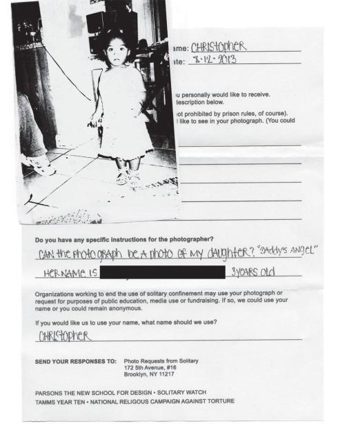 Visitors are allowed to have five pictures made on each visit. Despite the huge expense (relative to single prints in free society) the women tend to get five. Max out on memories. Optimise the presence of their loved one in the world. A photo is a thin slice of time, but it is a substantial presence in the free world of someone who is behind bars in a limbo-state of social death.