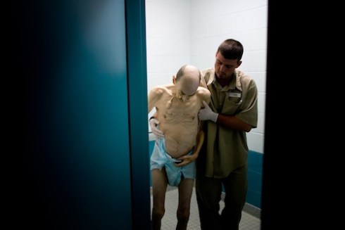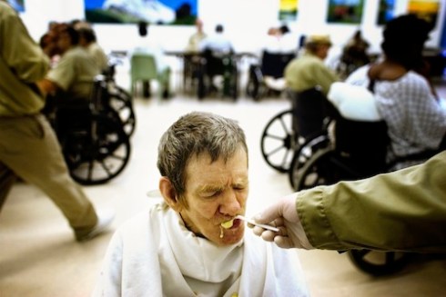 In 2008, Tim Gruber embedded at the Kentucky State Reformatory to photograph in the geriatric wing designated for elderly and terminally ill patients. The result is Served Out, a photography and multimedia project. Here, I featured six images included in the PPOTR/Cruel and Unusual exhibition, but you should check out Tim and Jenn’s website for more stellar images.