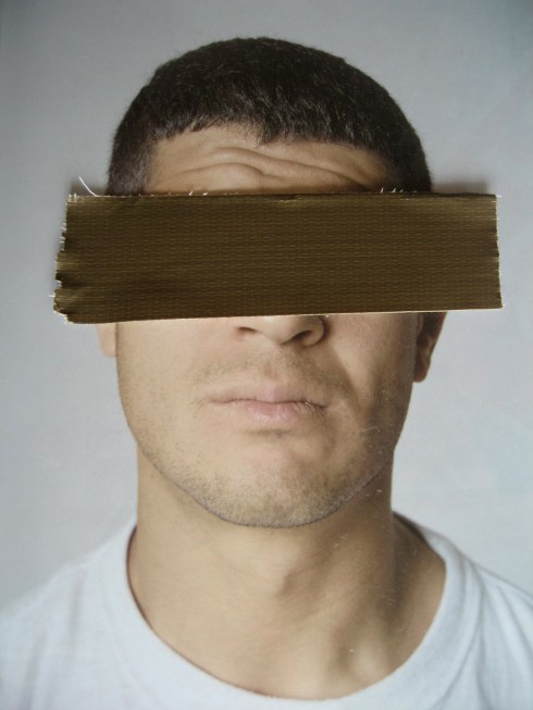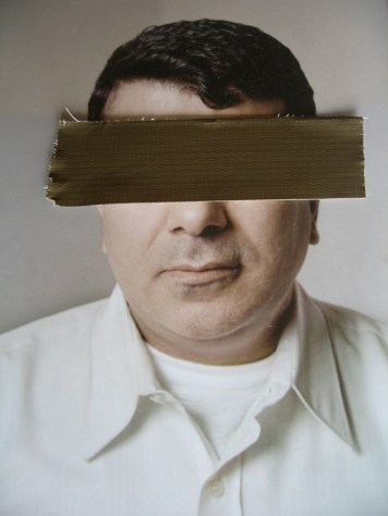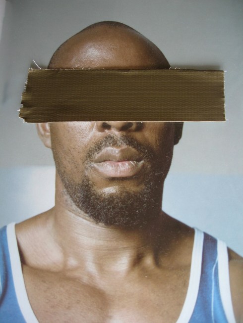 What!? Art-handlers and/or curators took the decision to use gaffer tape to make anonymous the portrait sitters!? Why bother using the photographs at all if you plan to deface them?