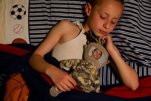 Joey Milledge has a plush replica of his late father Army Sgt. Joseph B. Milledge at his home in Gig Harbor, Washington. “I like to sleep with it because it gives me good memories of my dad and sometimesÉ and good dreams, too,” he said.