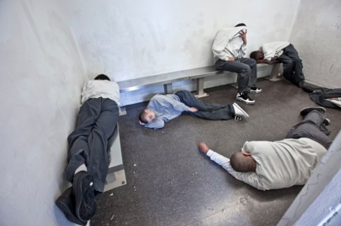 “I photographed intake moments before a director of Los Padrinos Juvenile Hall, Downey, CA, had the juveniles sit in erect and proper on the benches – an unnatural positions. This is one of three major centers of the Los Angeles Juvenile confinement system, collectively the largest in the country. The great majority here is populated by Hispanic and African-American juveniles,” says Ross.