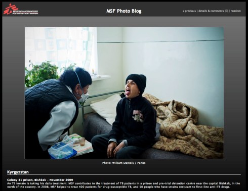 Today William Daniels‘ photograph reminded us of ongoing medical efforts against Extremely-Drug-Resistant Tuberculosis (XDR-TB) in the Kyrgyzstan and the former Soviet Union, particularly in prison colonies.