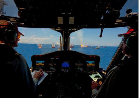 But just looking at the foolish doctoring of images, especially the helicopter cockpit image, I wonder if the culprit intended to be caught? The color of the photoshopped image is just ludicrous, literally unbelievable, unless that is Martin Parr’s Gulf of Mexico!