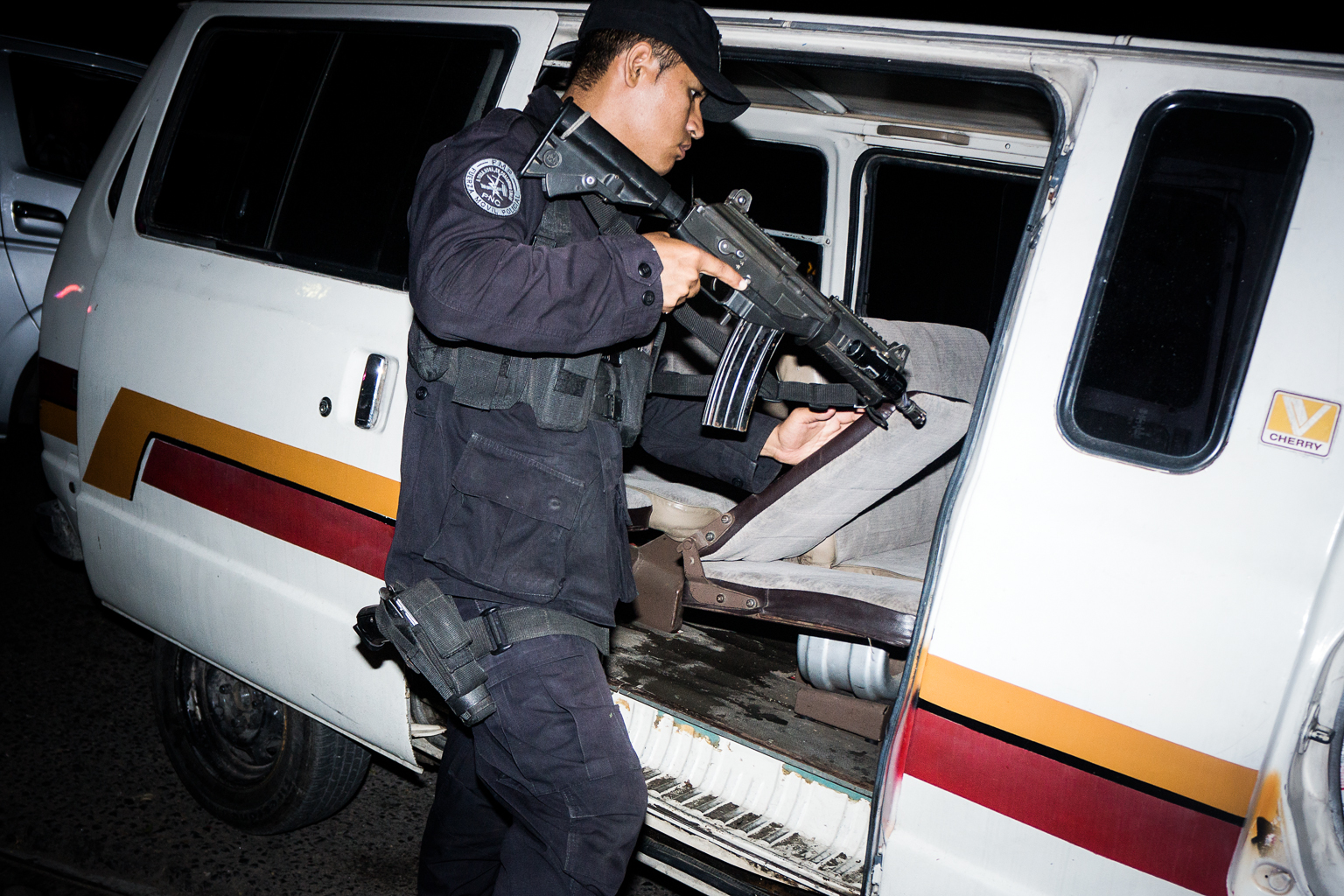 ”I told the police I wanted to ride along and went straight out into Barrio-18 territory,” says Clarke “Bare in mind these gangs are armed to the teeth and control huge swathes of the towns. Armed police units are joined by the military.”