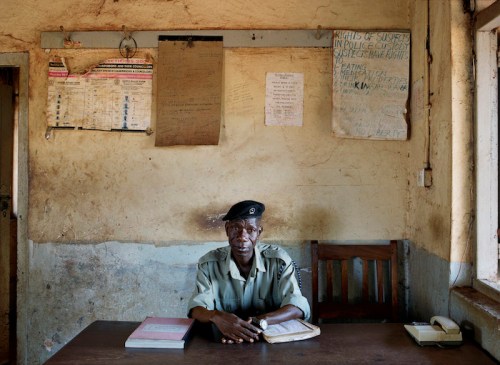 Uganda, May 2010, from the series “Law and Order”. Kakira Police Station, Jinja Town. Police Constable #11431, Ndalira John, 54. He earns 205,000 shillings (54 Euro/US$72) a month.