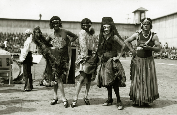 Prisoners in costume parading at the San Quentin Little Olympics Field Meet, 1930. Courtesy Anne T. Kent California Room Collection, Marin County Free Library.