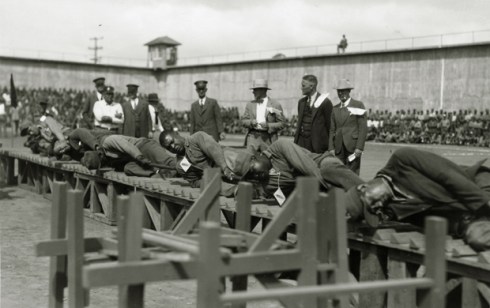 Tumbling competition, San Quentin Little Olympics Field Meet, 1930. Courtesy Anne T. Kent California Room Collection, Marin County Free Library