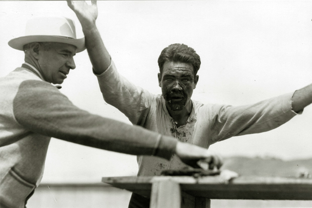 Tug-of-war competition with officials looking on, San Quentin Little Olympics Field Meet, 1930. Courtesy Anne T. Kent California Room Collection, Marin County Free Library