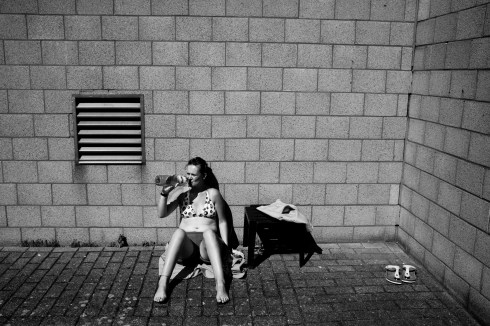 A woman is sunbathing inside the prison for women of Berkendaele on July 25, 2012. © Sébastien van Malleghem.