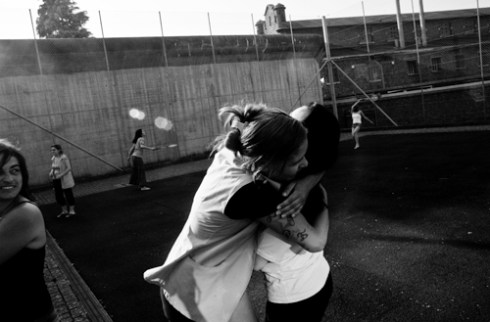Cuddle in the courtyard of the prison for women in Berkendaele on July 25, 2012. © Sébastien van Malleghem.