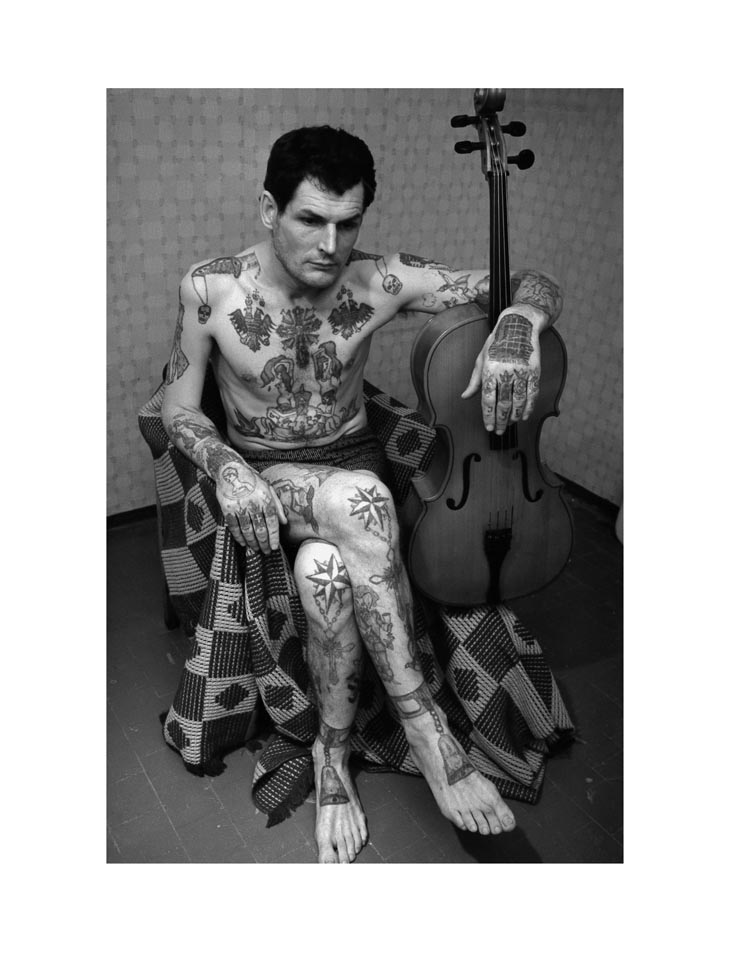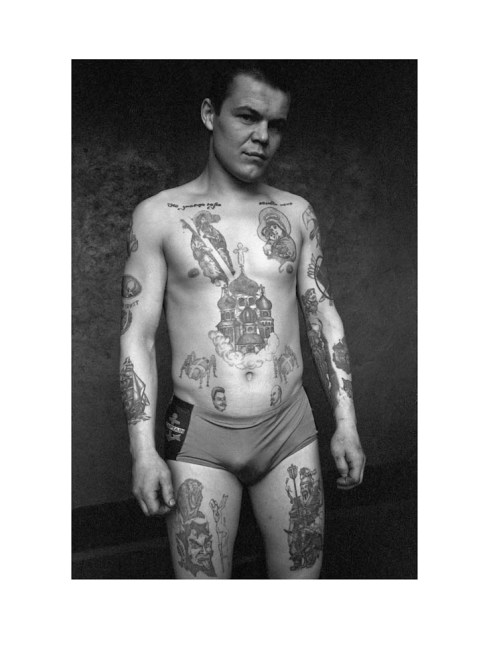 “The accompanying photographs by Sergei Vasiliev act as an important counterpart to Baldaev’s drawings, providing photographic evidence of their authenticity. […] In these images the nameless bodies of criminals act as both a text and mirror, reflecting and preserving the ever-changing folklore of the Russian criminal underworld.”