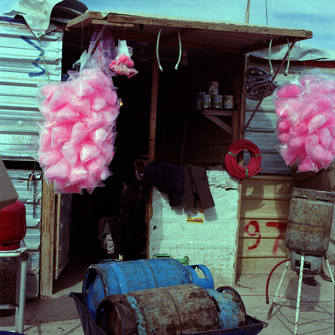 Toufic Beyhum‘s photographs of the Za’atari refugee camp in Jordan provide a look into the makeshift pastimes and work as well as the daily mundane activities of Syrian refugees. His series Champs Elysées focuses on the retail and food stands along the central road in Za’atari nicknamed Champs Elysées by French aid workers.